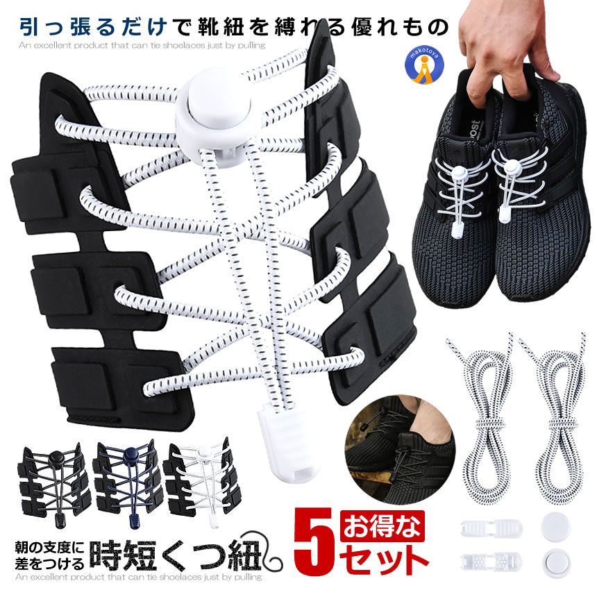 時短くつ紐 お得な5セット 靴紐 左右セット シューレースキーパー シューズ 靴 くつ ひも 解けない スニーカー ランニング 運動 便利 送料無料 5-ZITANKUTU