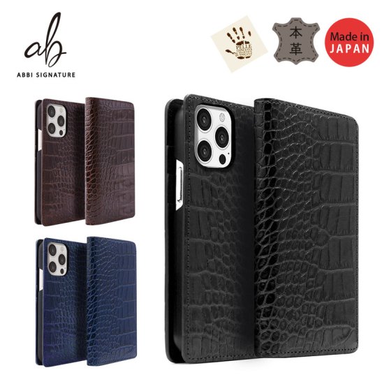国内正規品 ABBI SIGNATURE iPhone13 mini 手帳型 SIGNATURE LIPARI クロコダイルケース 熟練した日本の職人がハンドメイドで製造 ABS21789i13MNNV ABS21790i13MNBR