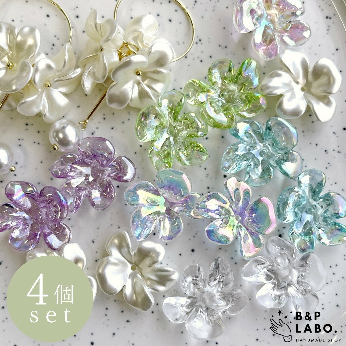 オーロラ フラワー カボション【4個入】リング 花びら パーツ 花 ビーズ ボタン ピアス アクセサリー パーツ ハンドメイド 韓国 | オーロラ パール ビーズ フラワー 花 ペタル アクリル ピアス イヤリング ヘアゴム オリジナルハンドメイド ヘアアクセサリー 問屋 レジン
