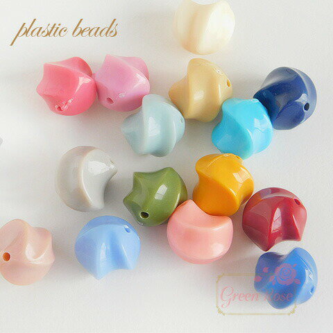 カラフルな変形ツイストビーズ 全16色 10個 プラスチックビーズ アクリルビーズ ビーズアンドパーツ beads736 GreenRoseYumi