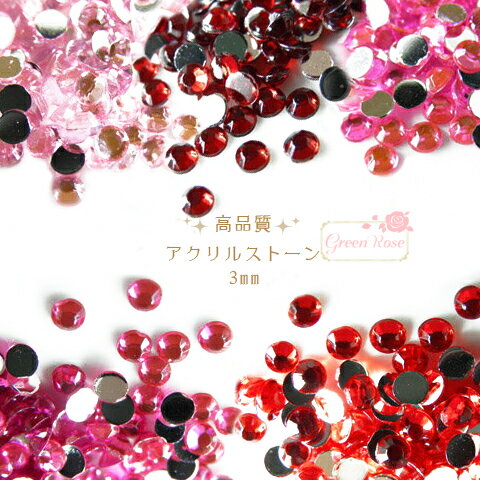 ハンドメイド 高品質アクリルストーン ピンク系 3mm 10g ネイル デコ アクセサリーパーツ stone28-3mm GreenRoseYumi