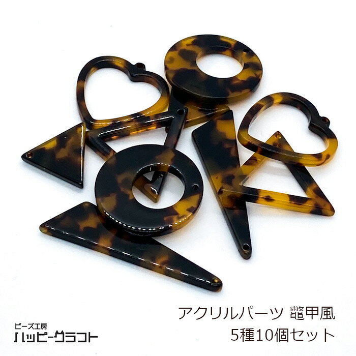 アクリルパーツ べっ甲 5種10個セット ブラウン べっこう 鼈甲 デザインミックス 穴有り くり抜き プレート チャーム 丸 三角 ハート スティック イヤリング ネックレス キーリング アクセサリー パーツ 秋冬 手芸 ハンドメイド S-096