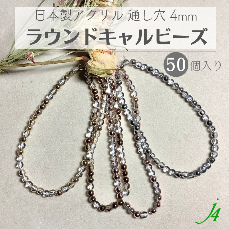 【 アクリル ラウンド キャルビーズ 4mm 丸玉 (50ヶ) j4】 アクセサリーパーツ 日本製 ビーズ 通し穴 陰影 メタル ダーク 半面 半分 ボール ビーズ キラキラ プラ プラスチック ハンドメイド 手作り パーツ 業務用 アクセサリー ピアス イヤリング ネックレス リング