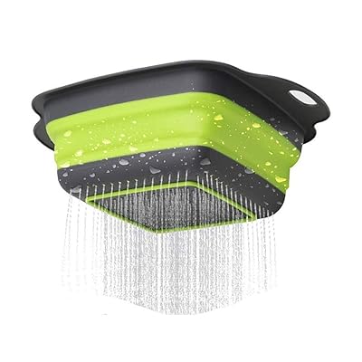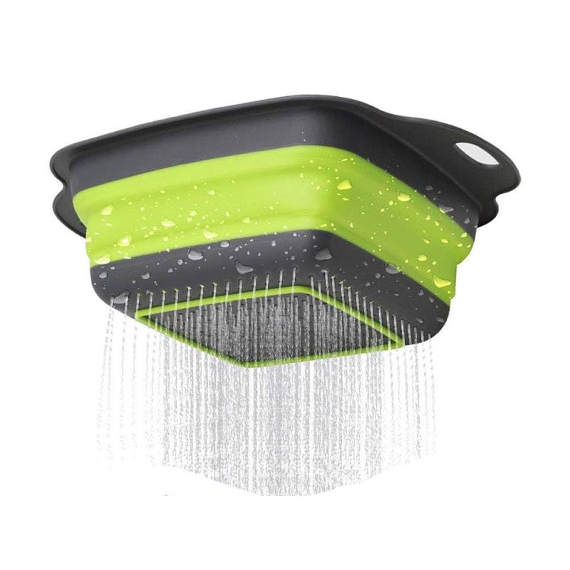 VIBACTUNS折りたため水切りシリコーンざる四角収納便利(緑)