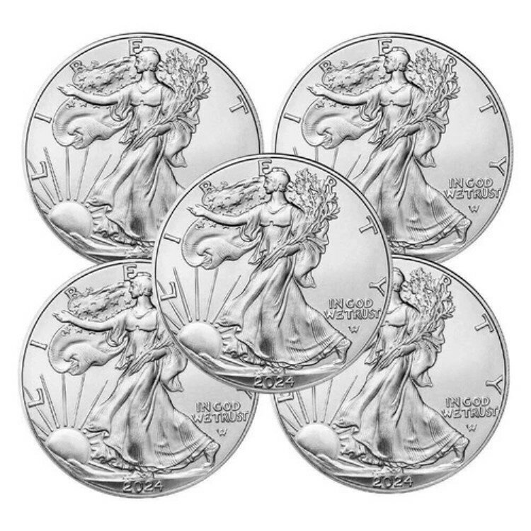 5枚セット - 2024年 1ドル アメリカン シルバー イーグル 1オンス BU 未開封 未使用