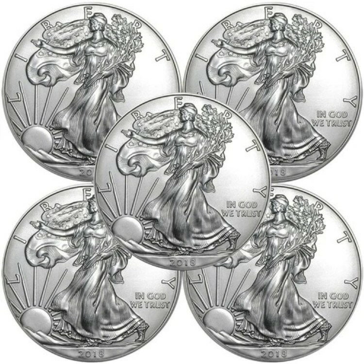 5枚セット - 2018年 1ドル アメリカン シルバー イーグル 1オンス BU 未開封 未使用