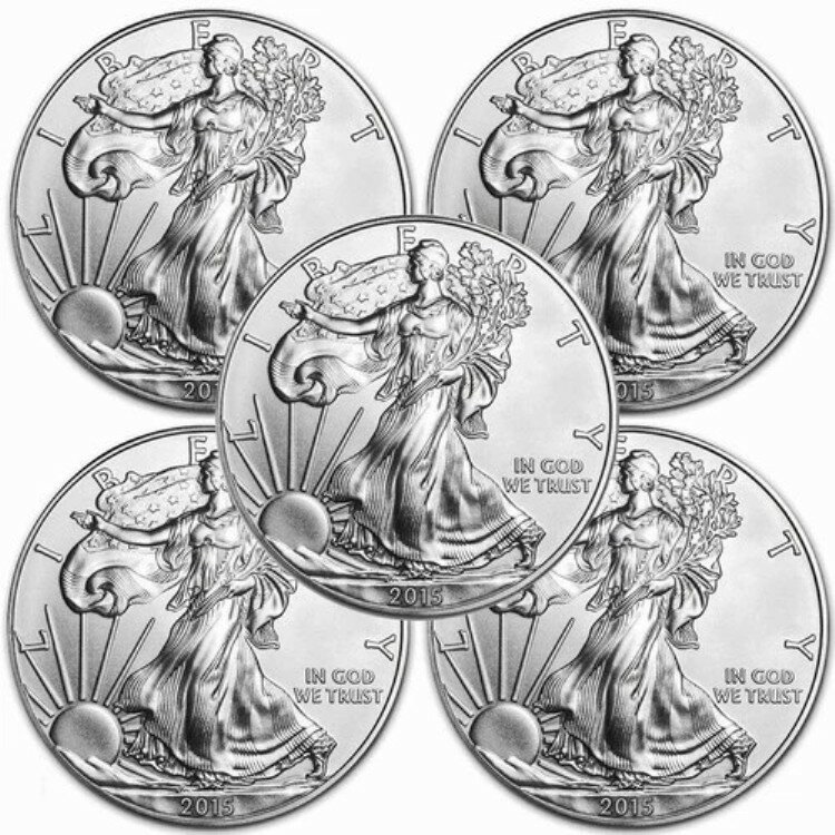 5枚セット - 2015年 1ドル アメリカン シルバー イーグル 1オンス BU 未開封 未使用