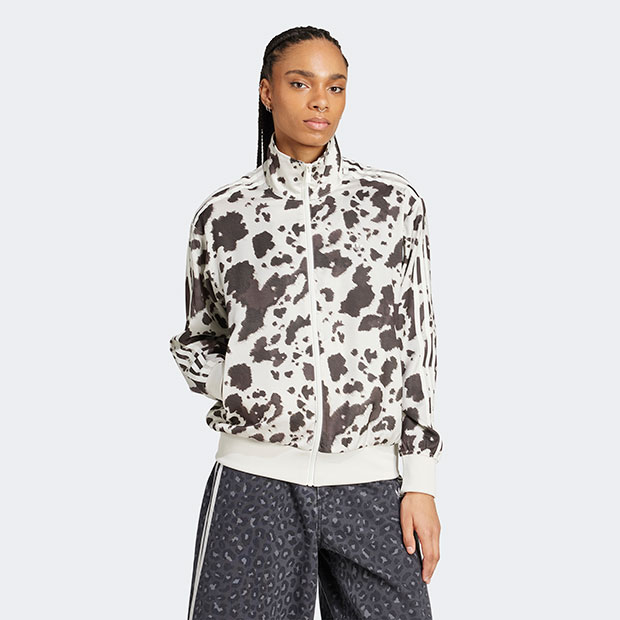 アディダスオリジナルス、大人/ウィメンズ用トラックトップ。 リサイクル素材で作られた、アニマルプリントのトラックトップ。目標に向かって頑張るつもりなら、最後まで力を出し切ろう。このアディダス トラックトップが、最後まで応援してくれる。全体にアニマルプリントをあしらい、クラシックなスポーツウェアを大胆にアップデートしたサテンジャケット。袖のプリント柄にさりげなく馴染むスリーストライプス、リブ仕上げのディテール、そして高めのスタンドカラーなど、シグネチャーのディテールは健在。 ◆ルーズフィット ◆フルジップ ◆スタンドカラー ◆サイドポケット ◆リブ仕上げの袖口と裾 品質:ポリエステル100% カラー:マルチカラー×オフホワイト