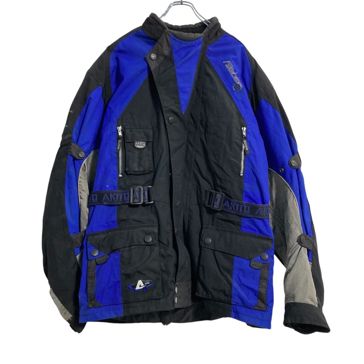 【中古】【古着】 AKITO モーターサイクルジャケット 2XL ブラック ブルー ライダース レーシング 古着卸 アメリカ仕入 a611-6605