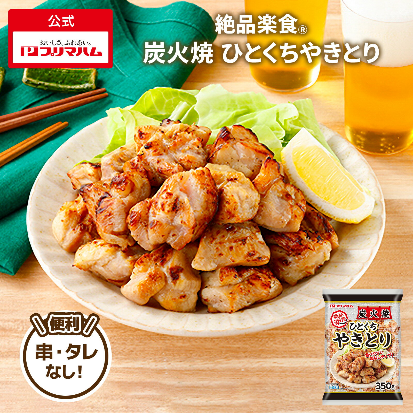 家庭では調理が難しい炭火焼き仕上げ! 色々な料理に使いやすい、串なしでタレなしタイプ。 【内容】 ・絶品楽食 炭火焼ひとくちやきとり 350g 【発送方法】 ・冷凍便 ■加工食品の食品必須記載事項 商品名 絶品楽食 炭火焼ひとくちやきとり 名称 やきとり 原材料名 鶏もも肉、みりん、食塩、砂糖、しょうゆ、ホエイパウダー、卵白粉/加工でん粉、ポリリン酸Na、香料、酸化防止剤(ビタミンC)(一部に小麦・卵・乳成分・大豆・鶏肉を含む)) アレルゲン 卵・乳成分・小麦・大豆・鶏肉 内容量 350g 賞味期限 製造日より冷凍で540日 保存方法 -18℃以下で保存してください 原産国名 タイ 輸入者 伊藤忠商事株式会社東京都港区北青山2-5-1 販売者 プリマハム株式会社東京都品川区東大井3-17-4 ご注意 ご自宅向け商品の為、ダンボールでのお届けになります。 のし、包装紙等のギフト対応は出来ませんので、予めご了承ください。 納品書、請求書は同封いたしておりません。 商品の規格・パッケージ等は事前の告知なく変更になる場合がございます。 [絶品楽食 アレンジ食堂 冷凍 お弁当 おつまみ ひとくち 業者 家族用 パーティー 大人数 ]■加工食品の食品必須記載事項 商品名 絶品楽食 炭火焼ひとくちやきとり 名称 やきとり 原材料名 鶏もも肉、みりん、食塩、砂糖、しょうゆ、ホエイパウダー、卵白粉/加工でん粉、ポリリン酸Na、香料、酸化防止剤(ビタミンC)(一部に小麦・卵・乳成分・大豆・鶏肉を含む)) アレルゲン 卵・乳成分・小麦・大豆・鶏肉 内容量 350g 賞味期限 製造日より冷凍で540日 保存方法 -18℃以下で保存してください 原産国 タイ 製造者 伊藤忠商事株式会社東京都港区北青山2-5-1 販売者 プリマハム株式会社東京都品川区東大井3-17-4 [ 送料無料 絶品楽食 アレンジ食堂 冷凍 お弁当 おつまみ ひとくち 業者 家族用 パーティー 大人数 家族用 パーティー 誕生日会 大人数 焼き肉 鉄板焼き ]
