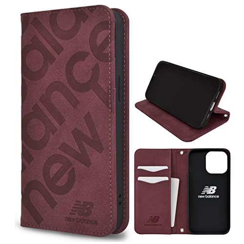 【 New B alance 正規品 】 iPhone15 Pro Max 対応 ケース 手帳型 カード収納 6.7インチ 3レンズ ブランドロゴ おしゃれ「スタンプロゴスエード」 ニュー バランス ロゴ型押し(バーガンディ)