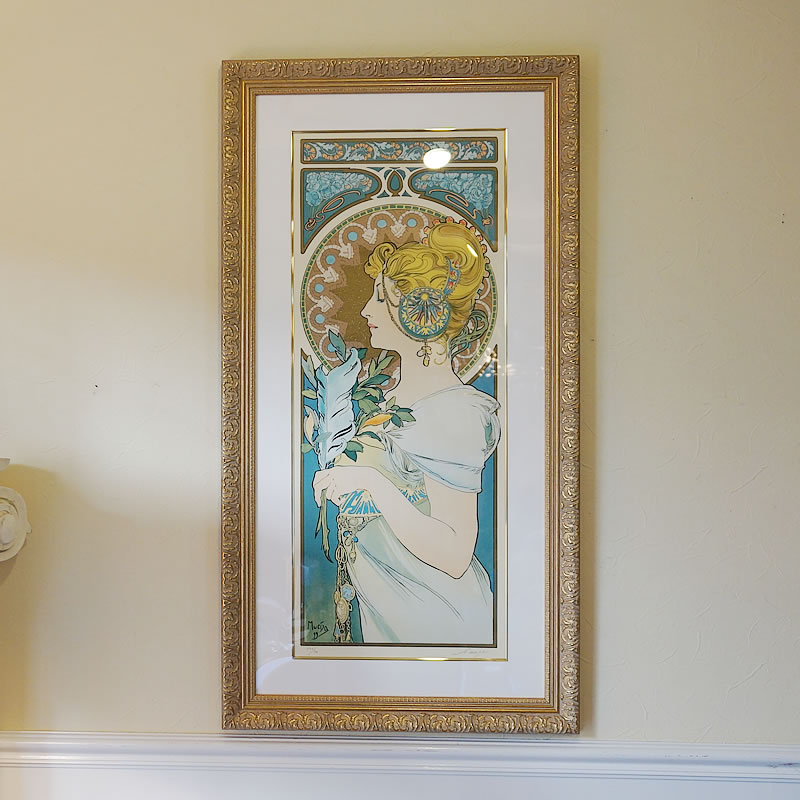 ヴィンテージ アルフォンス ミュシャ画 「 羽根ペン 」 シルクスクリーン ポスター Alfons Mucha ビンテージ 絵画 インテリア 壁掛け 絵画 額入り 絵画 ポスター 絵画 海 インテリア 雑貨 アンティーク アンティーク調 風景 動物 ヨーロピアン インポート