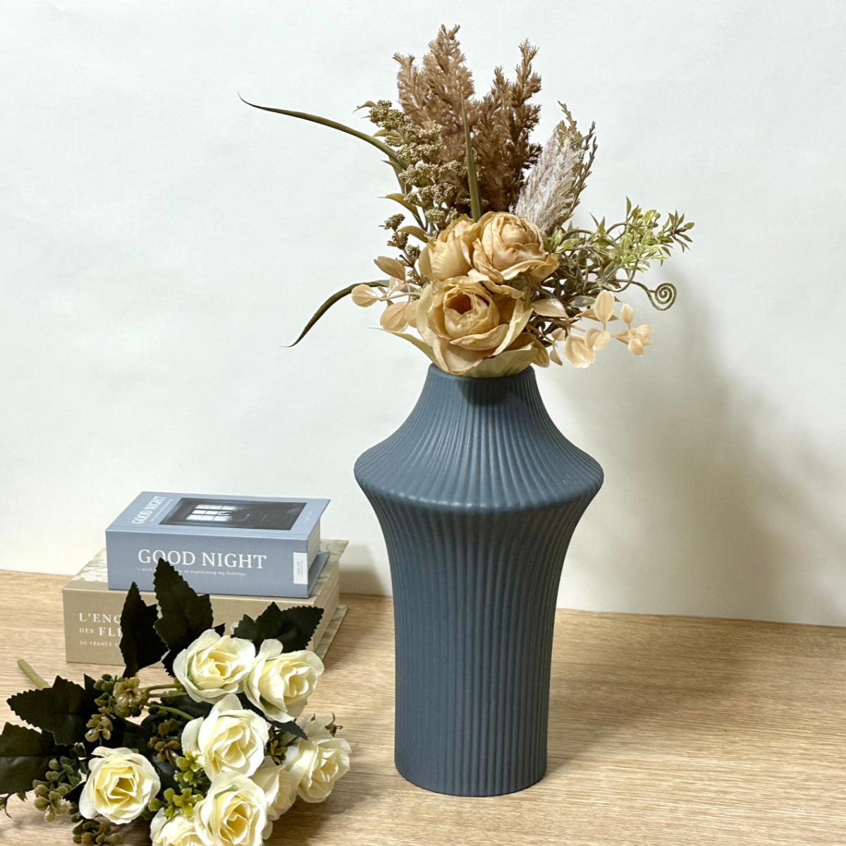 花瓶 Alfons セラミック ( 花びん 花器 ベース 一輪挿し 無地 フラワー 花 飾る 変形 縞模様 植物 切花 花束 ドライフラワー 野草 インテリア おしゃれ 卓上 床置き マット 凸凹 オブジェ ) 【3980円以上送料無料】