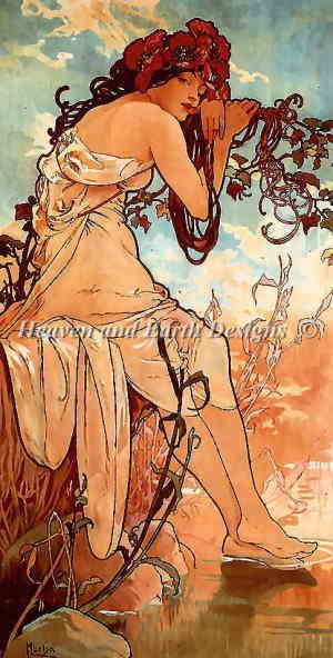 Alfons Maria Mucha(アルフォンス・マリア・ミュシャ) 名画 【Summer-Mucha】 美術 絵画 芸術作品 HAED クロスステッチ刺しゅう 図案 Heaven And Earth Designs 輸入 チャート