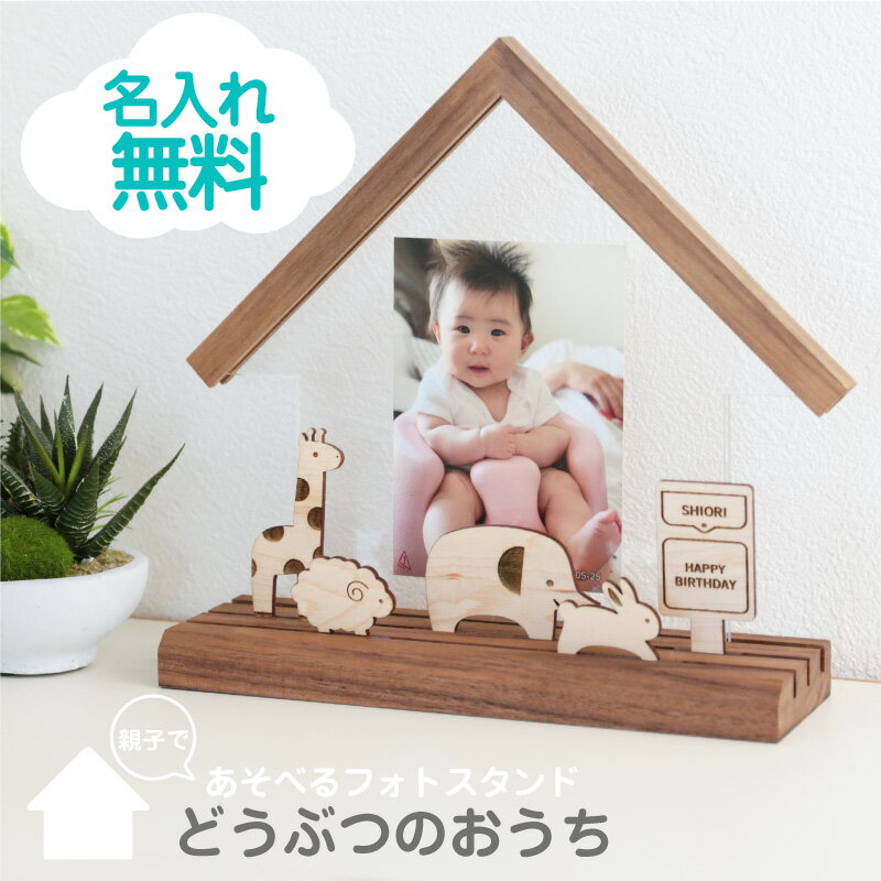フォトフレーム 名入れ【 親子であそべるフォトスタンド どうぶつのおうち 】 プレゼント ギフト かわいい アクリル 赤ちゃん 子供 ベビー お祝い 記念日 写真立て 誕生日 出産祝い 卒園式 七五三 メモリアル 1歳 2歳 3歳 送料無料 翌々営業日出荷