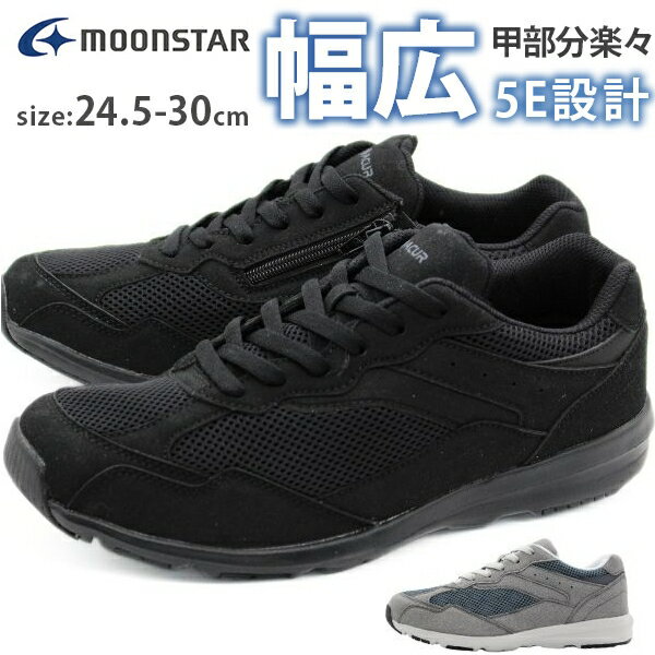 スニーカー メンズ 靴 幅広 5e ワイド 5E 軽量 軽い 黒 ブラック 疲れない 疲れにくい クッション シンプル 抗菌 防臭 ファスナー ビジネス 仕事 オフィス 通勤 通学 カジュアル おしゃれ 大きいサイズ ムーンスター サプリスト moonstar SPLT AMM117
