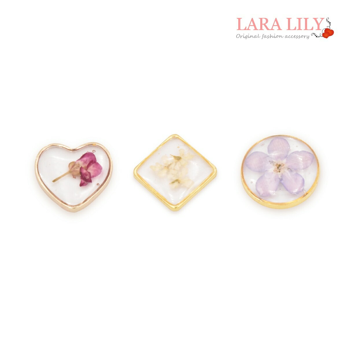 樹脂イヤリング 樹脂ピアス ドライフラワー 花 3点セット 片耳用 シンプル おしゃれ かわいい レディース 春 夏 秋 冬 金属アレルギー対応 勿忘草 押し花 レジン 小ぶり amm
