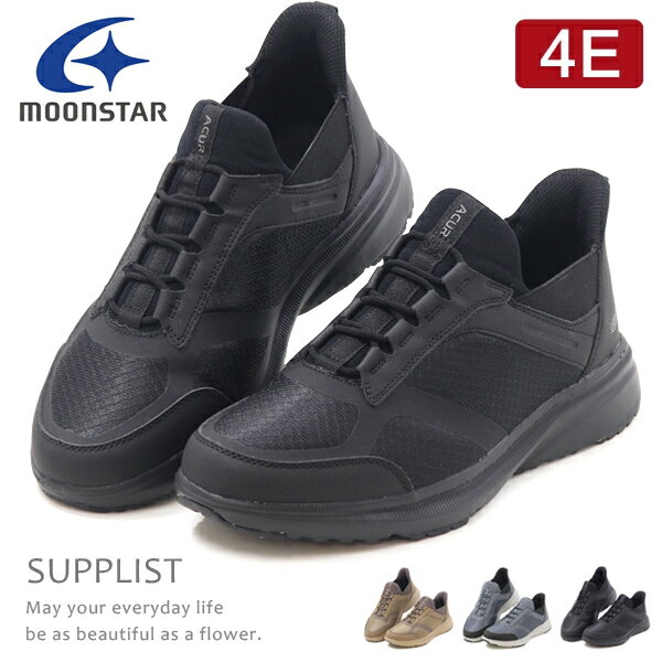 【24.5cm・25cm・30cm】5E【Supplist】サプリストAMM107-5E 紳士靴 幅広5E 抗菌防臭 ムーンスター メンズスニーカー デイリーシューズ 月星 横幅広め 散歩 ウォーキング 運動靴 つま先ゆったり 軽量 日常履き 足裏まくら ヘルストゥラスト ベージュ グレイ ブラック