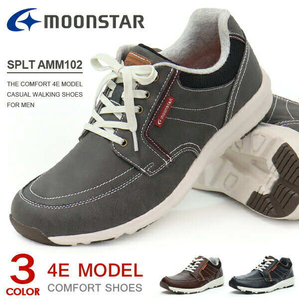 【11/14 10:00-11/16 23:59 10%OFFクーポン】ムーンスター moonstar メンズ スニーカー ウォーキング シューズ SPLT AMM102 グレイ 24.5cm 25cm 25.5cm 26cm 26.5cm 27cm 28cm幅広 4E 抗菌防臭 足裏まくら 父の日 ワイド設計 つま先ゆったり