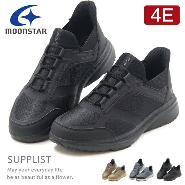 ムーンスター スニーカー メンズ ウォーキングシューズ 幅広 4E 合皮 カジュアルシューズ 軽量設計 抗菌防臭 紐靴 サプリスト SPLT AMM102
