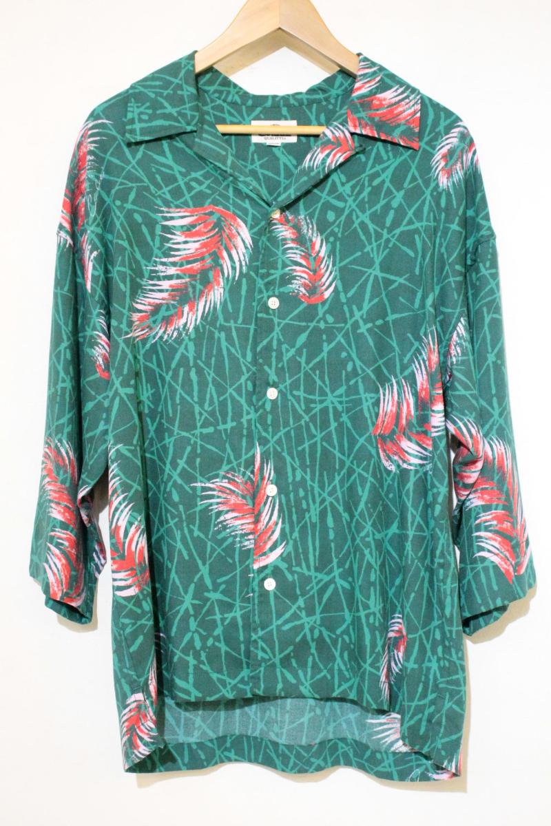 【中古】 CALEE メンズ半袖シャツ M CALEE/23SS/ALLOVER FEATHER PATTERN AMUNZEN CLOTH S/S SHIRT/M/緑 グリーン/総柄