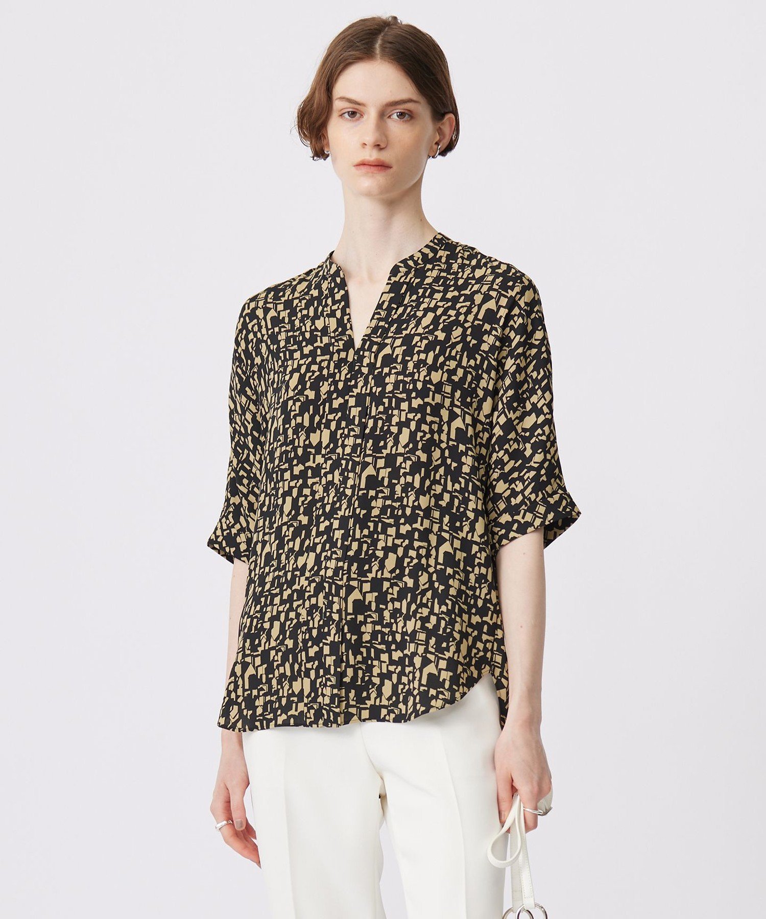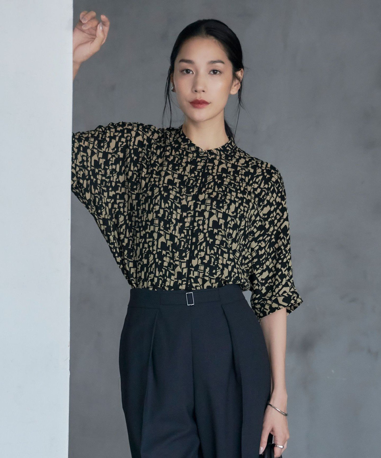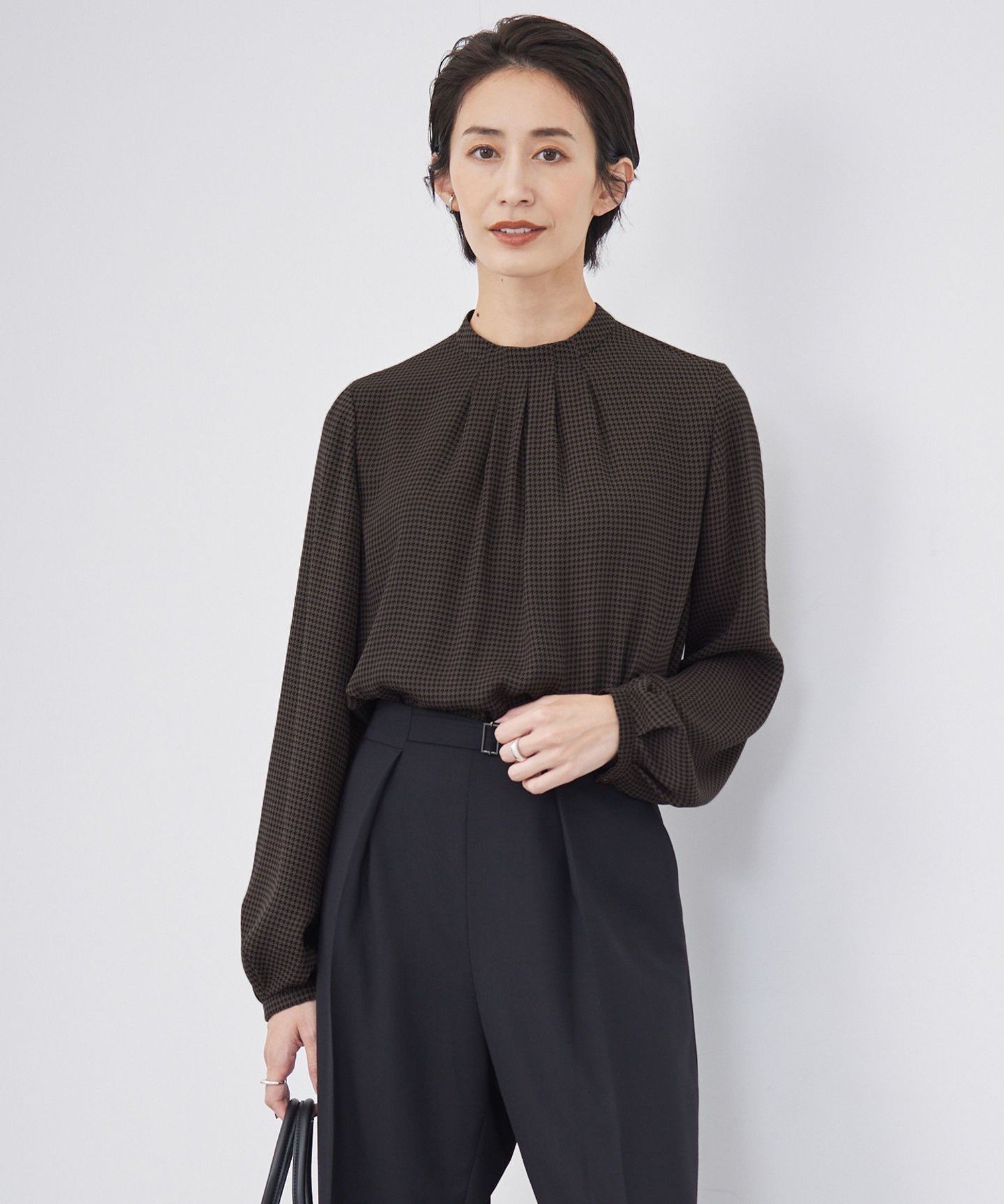 [型番:BLCYCW0070]2024AW【大人気柄が長袖バージョンで登場】一枚で洗練された印象のきれい目バンドカラーブラウス■デザイン前立て部分の配色デザインでアクセントを効かせ、機能性素材を使用し着心地にもこだわったバンドカラーブラウス。普段使いからオフィスシーン、セレモニーまで幅広く活躍します。バーガンディ(015)とブラックプリント柄(505)はWEB限定カラーです。■素材程良いふくらみと凸凹のある柔らかなバックサテンの素材で、細やかな表情感と抜群の肌離れの良さと柔らかさ、着心地と見た目、仕立て映えの良さも兼ね揃えた優秀ブラウス素材。■機能性1)UVケア紫外線を82.0%カットしてくれるので、着るだけで紫外線対策が叶います。2)Washableご自宅での手洗いが可能で、シワにもなりづらくイージーケア。3)速乾性汗をかく季節でもサラリと着用可能。手洗い後に乾きが早いのも嬉しいポイント。4)接触冷感ひんやりとしたタッチで夏でも快適な着心地。※商品の取り扱い方法につきましては、タグ等に記載されている「取り扱い上の注意」「洗濯表示」をご確認ください。※採寸情報はサンプル商品のデータです。実際の商品と仕様が異なる場合がございます。※商品画像はサンプルを使用しているため、実際にお届けする商品と色味やサイズなどの仕様に変更がある場合がございます。予めご了承くださ■カラー:6色展開XS:着丈64.6 身幅48.5 肩幅39.2 そで丈56.0\nS:着丈65.0 身幅50.0 肩幅40.3 そで丈56.6\nM:着丈67.0 身幅53.0 肩幅41.8 そで丈57.9※( )で表記されている数字はヌードサイズです。ヌードサイズとは衣服を身につけない身体のサイズです。お客様ご自身の身体サイズと比較してお選びください。 ■素材: ポリエステル:100% ■お手入: 手洗い、酸素系漂白剤可、タンブル乾燥不可、自然乾燥、アイロン仕上げ可、ドライ、ウエットクリーニング可 >>商品のお取り扱い方法 ■原産国: ベトナム【接触冷感・UVケア・速乾・洗える】BackSatinAmunzen バンドカラーブラウス/ICB(ICB)ブラックプリント柄系[WEB限定]バーガンディ系[WEB限定]ブラックベース柄系コーヒーベース柄系ブラック系オフホワイト系画面上と実物では、多少色具合が異なって見える場合がございます。