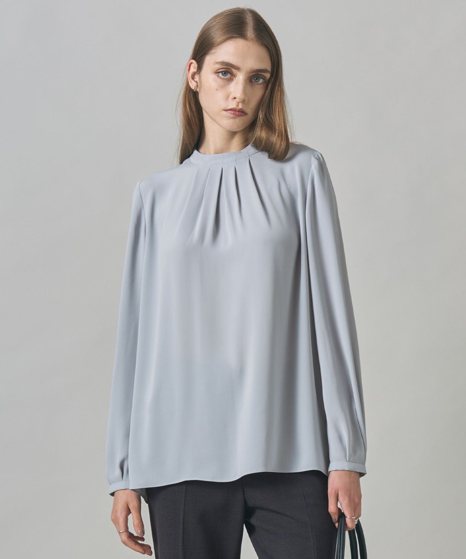 [型番:BLCYGW0420]2025AWボリューム袖がポイント、シーンレスに活躍するハイネックブラウス■デザインハイネックのタックデザインがポイントで袖に膨らみ感を持たせた長袖ブラウスです。程よい袖のボリューム感はタックで表現し、甘くなりすぎないディテールにこだわっています.ジャケットINや一枚着としても着映えるのでセレモニーシーンや通勤などシーンレスに活躍します。■機能性1)UVケア紫外線を82.0%カットしてくれるので、着るだけで紫外線対策が叶います。2)Washableご自宅での手洗いが可能で、シワにもなりづらくイージーケア。3)速乾性汗をかく季節でもサラリと着用可能。手洗い後に乾きが早いのも嬉しいポイント。4)接触冷感ひんやりとしたタッチで夏でも快適な着心地。■素材程良いふくらみと凸凹のある柔らかなバックサテンの素材で、細やかな表情感と抜群の肌離れの良さと柔らかさ、着心地と見た目、仕立て映えの良さも兼ね揃えた素材です。※商品の取り扱い方法につきましては、タグ等に記載されている「取り扱い上の注意」「洗濯表示」をご確認ください。※採寸情報はサンプル商品のデータです。実際の商品と仕様が異なる場合がございます。※商品画像はサンプルを使用しているため、実際にお届けする商品と色味やサイズなどの仕様に変更がある場合がございます。予めご了承ください。■カラー:サックスグレー系、オフホワイト系XS:着丈64.0 身幅53.1 肩幅36.0 そで丈59.1S:着丈64.0 身幅55.1 肩幅36.7 そで丈60.0M:着丈66.0 身幅58.0 肩幅39.0 そで丈61.0※( )で表記されている数字はヌードサイズです。ヌードサイズとは衣服を身につけない身体のサイズです。お客様ご自身の身体サイズと比較してお選びください。 ■素材: ポリエステル:100% ■お手入: 手洗い、酸素系漂白剤可、タンブル乾燥不可、自然乾燥、アイロン仕上げ可、ドライ、ウエットクリーニング可 >>商品のお取り扱い方法 ■原産国: ベトナム【接触冷感・UVケア・速乾・洗える】BackSatinAmunzen ハイネックブラウス/ICB(ICB)サックスグレー系オフホワイト系画面上と実物では、多少色具合が異なって見える場合がございます。