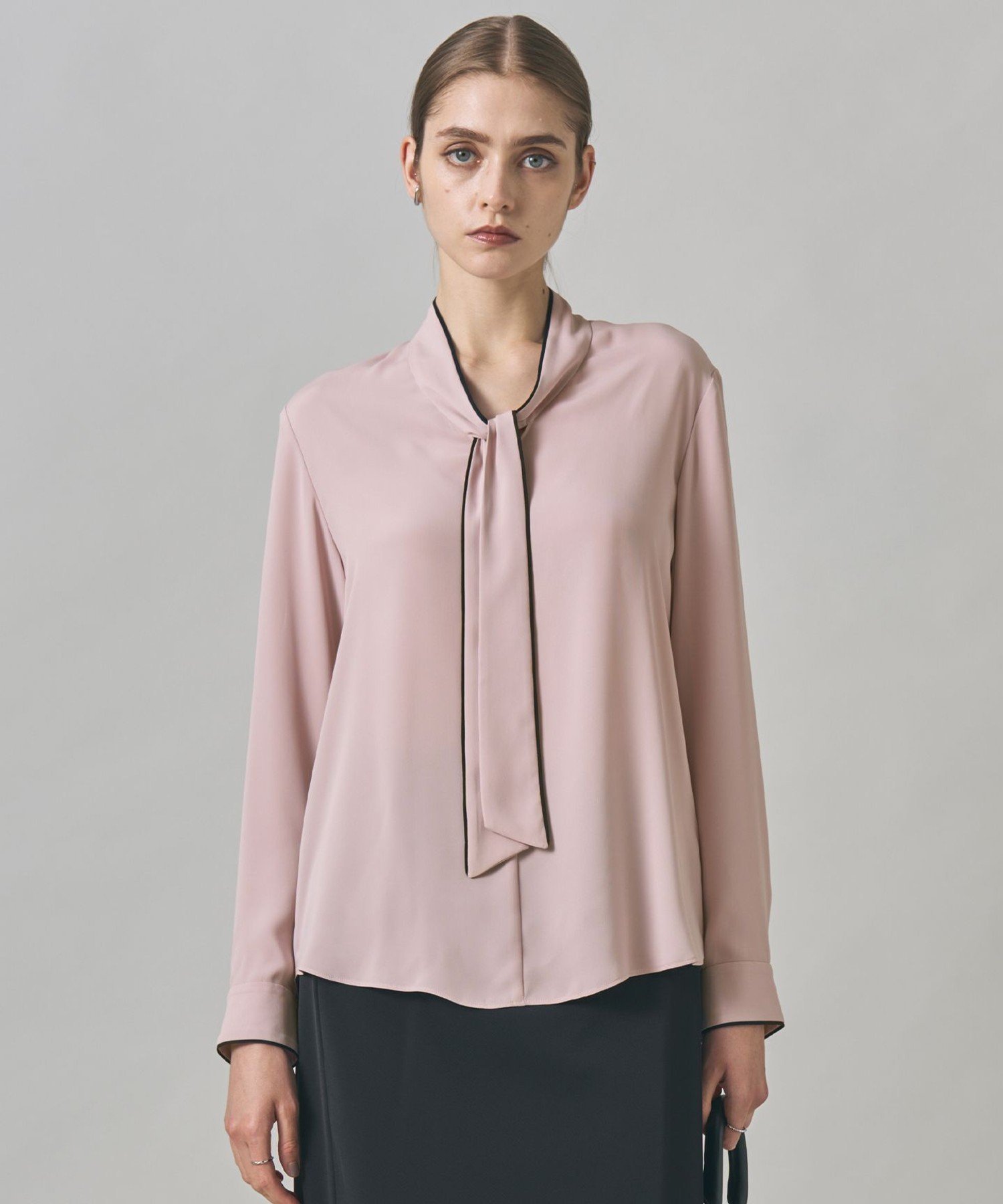 [型番:BLCYGW0075]2025AW女性らしい上品さをプラスするきれい目ボウタイブラウス■デザインバイカラーの配色トリミングを効かせたボウタイの長袖ブラウスです。単品でもジャケットのインナーとしてもスタイリングのポイントになるデザインに仕上げています。単品はもちろん、スーツやジャケットのインナーとして通勤やセレモニーシーンにも活躍します。■機能性1)UVケア紫外線を82.0%カットしてくれるので、着るだけで紫外線対策が叶います。2)Washableご自宅での手洗いが可能で、シワにもなりづらくイージーケア。3)速乾性汗をかく季節でもサラリと着用可能。手洗い後に乾きが早いのも嬉しいポイント。4)接触冷感ひんやりとしたタッチで夏でも快適な着心地。■素材程良いふくらみと凸凹のある柔らかなバックサテンの素材で、細やかな表情感と抜群の肌離れの良さと柔らかさ、着心地と見た目、仕立て映えの良さも兼ね揃えた素材です。※商品の取り扱い方法につきましては、タグ等に記載されている「取り扱い上の注意」「洗濯表示」をご確認ください。※採寸情報はサンプル商品のデータです。実際の商品と仕様が異なる場合がございます。※商品画像はサンプルを使用しているため、実際にお届けする商品と色味やサイズなどの仕様に変更がある場合がございます。予めご了承ください。■カラー:4色展開XS:着丈64.0 身幅49.0 肩幅39.5 そで丈56.0S:着丈65.0 身幅51.1 肩幅40.1 そで丈57.0M:着丈67.0 身幅53.6 肩幅41.0 そで丈58.0※( )で表記されている数字はヌードサイズです。ヌードサイズとは衣服を身につけない身体のサイズです。お客様ご自身の身体サイズと比較してお選びください。 ■素材: ポリエステル:100% ■お手入: 手洗い、酸素系漂白剤可、タンブル乾燥不可、自然乾燥、アイロン仕上げ可、ドライ、ウエットクリーニング可 >>商品のお取り扱い方法 ■原産国: ベトナム【接触冷感・UVケア・速乾・洗える】BackSatinAmunzen 配色ボウタイブラウス/ICB(ICB)ヘイズピンク系ブラック系サックスグレー系オフホワイト系画面上と実物では、多少色具合が異なって見える場合がございます。
