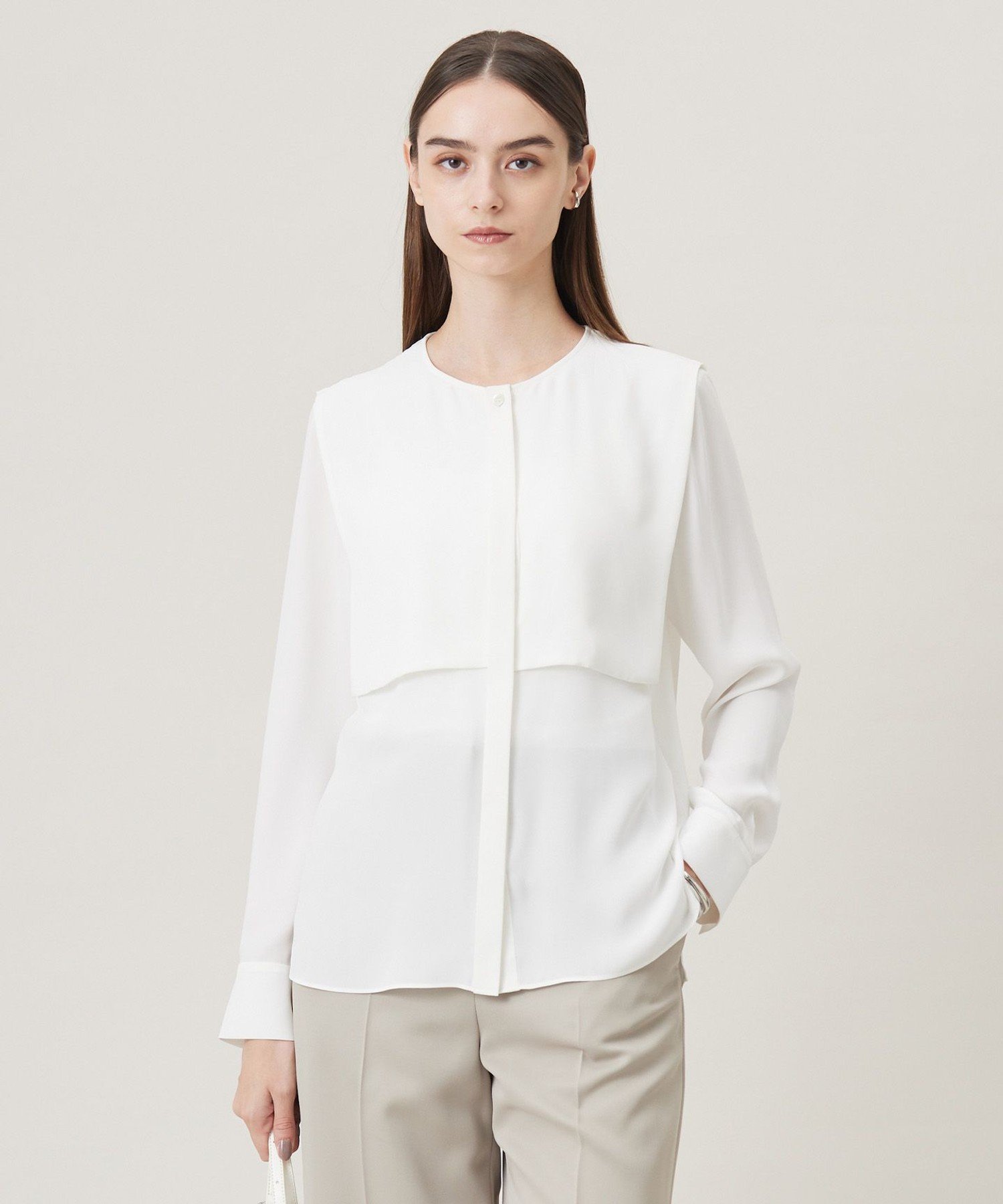 【接触冷感・UVケア・速乾・洗える】BackSatinAmunzen バンドカラーブラウス/ICB(ICB)