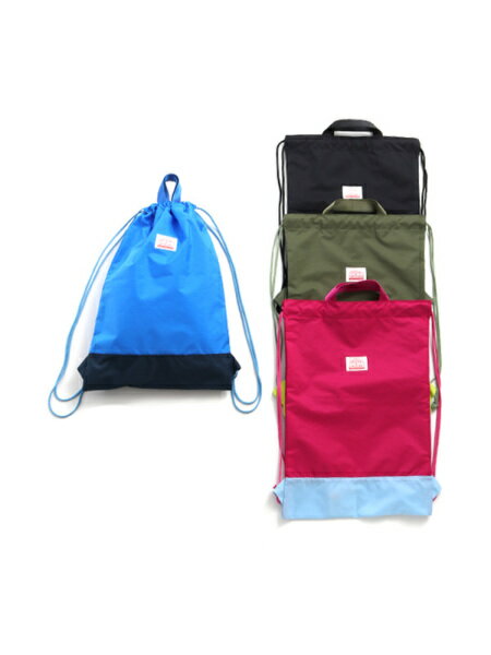 商品番号 1025005 素材(本体) ナイロン 100% テープ ポリエステル 100% 底 合成皮革 カラー展開 ブラック(BK)/ブルー(BL)/カーキ(KK)/ピンク(PK) サイズ展開 L (縦約50cm×横約36cm) ご注意 商品のサイズは多少誤差が発生する場合がございます。 ご利用端末の環境により画面上と実物では、色彩が異なって見える場合がございます。 複数店舗で在庫を共有している商品の為、ご注文のタイミングによっては完売している場合もございます事を、ご了承ください。バイカラ—の配色がポイントのシンプルデザイン。 お出かけ、着替え入れ、習い事にと、色々なシーンにご使用いただけるアイテムです。 巾着のように絞るだけ、リュックとして背負えて、口部分の持ち手も便利です。