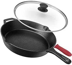 味付け済み鋳鉄フライパン (12 インチ) ガラス蓋とハンドルカバー付き オーブン対応調理器具 - 耐熱ホルダー - 屋内および屋外での使用 - グリル、コンロ、IH 対応 cuisinel Pre-Seasoned Cast Iron Skillet (12-Inch) with Glass Lid and Handle