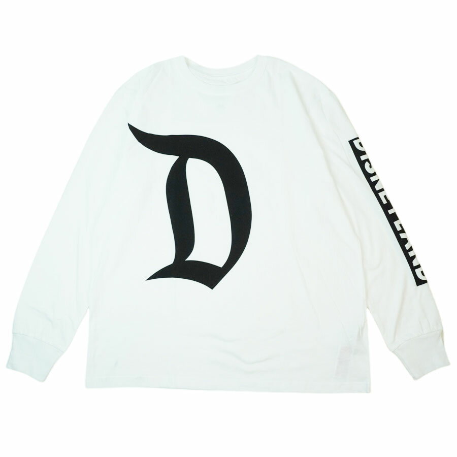 商品説明 オールドイングリッシュのDが大きく施されたディズニーランドの長袖Tシャツです。袖にもプリントがあり、カラーも白黒で合わせやすいです。コットン60%ポリエステル40% 平置きサイズ(約) ■L 着丈 69 cm 身幅 59 cm 肩幅 51 cm 袖丈 63 cm ■XL 着丈 70.5 cm 身幅 64 cm 肩幅 52.5 cm 袖丈 64.5 cm