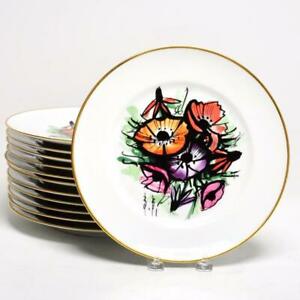 【送料無料】キッチン用品・食器・調理器具・陶器 珍しい!バーナードビュッフェアネモネベルナルドー・リモージュディナープレートRARE! TWELVE (12) BERNARD BUFFET ANEMONES BERNARDAUD LIMOGES DINNER PLATES