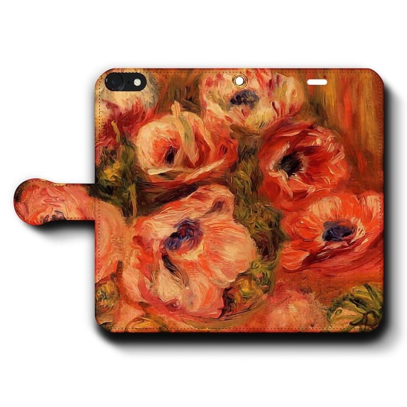 スマホケース手帳型 全機種対応 ルノワール anemones iPhone12Pro iPhone16Pro iPhone8 iPhone7 iPhoneSE第三世代 Galaxy Xperia 名画 絵画 iPhone13