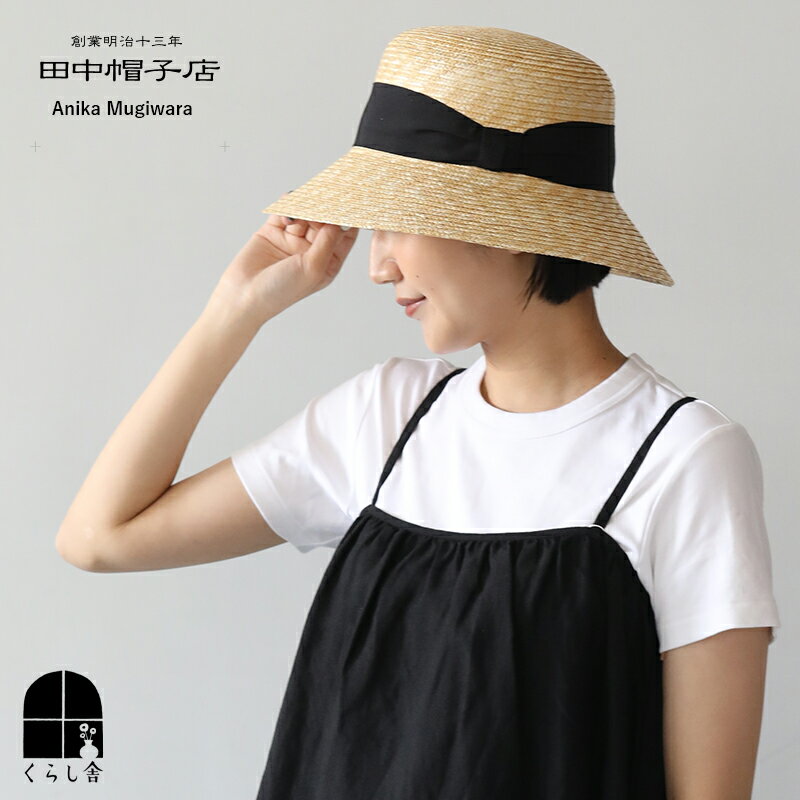 田中帽子店 Anika アニカ 麦わら 女優帽 クラウン浅め 麦わら帽子 ストローハット 57cm 59cm レディース uk-h111
