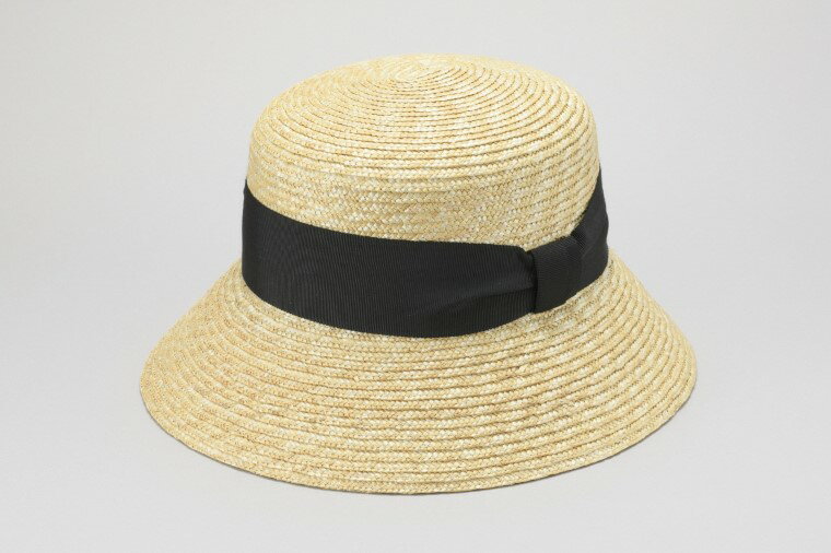 サイズ 頭周り(2サイズ)/57cm、59cm ※ナチュラル×ベージュリボンは57cmのみ ※手作りですので、多少の個体差があります。サイズは目安ですので、予めご了承ください。 素 材 〈本体〉天然草木(麦わら) 〈リボン〉レーヨン 〈汗止め〉ポリエステル 仕 様 >テープでサイズを微調整可(約-1.5cmまで) あご紐用ループ付き田中帽子店謹製タグ付き 生産国 日本 カラー 4色/ナチュラル×ブラックリボン、ナチュラル×グレージュリボン、ナチュラル×クリームリボン、ナチュラル×ベージュリボン ◆人気の女優帽タイプの新作 田中帽子店の女性用人気ナンバーワンの女優帽タイプ。顔を包み込むようなシルエットは、お顔を紫外線から守り女性をエレガントにみせるデザインです。 シンプルな太めなリボンはサイドをキュッと絞ってアクセントに。上品なデザインでどなたでもかぶりやすいデザイン。長めのつばは、首筋にもしっかり影を落とします。 ◆女性の声を取り入れたデザイン 帽子を深くかぶるとファンデーションが汗止めについてしまいがち。汚れが目立ち不快な思いをすることがあります。この帽子はあえてクラウンを浅めに、やや頭囲を小さめにデザインしています。帽子をズボっと深くかぶるのではなく、浅めにかぶることで、額に汗止めがぴったりと付きにくいようデザインされています。 少し前つばを上げて斜めにかぶるとより美しいシルエットになります。デザイン&機能性と、細かい気配りがうれしい納得の帽子です。 ◆通気性に優れ、日除けに最適な「麦わら」素材 7本の麦茎を手で編んだ「麦わら真田」を材料としています。麦わら帽子は、折り畳むことが出来ないので、持ち運びに多少の不便さはあるものの、麦わら帽子ならではの魅力がたくさんあります。それは、天然素材ならではの素材感と涼しさです。麦わらは、日光に当たるとわずかにきらきらと光ります。これは人工の素材ではないことで、麦わら独特の特長です。涼しさについては、多くの農家がいまだに愛用していることで実証済ですが、茎の繊維自体に目に見えない無数の穴がいくつもあり、乾燥した後、空気穴の役割を果たしているものと思われます。また、少し硬めの素材であるため、つばを長くしても垂れづらいことから、日除け用としても重宝します。 ◆風が強い時や自転車に乗る時にも安心 両サイドにループ付きなので、紐を付ければ風にあおられても飛ばされません。 紐をつけてバッグに縛れば「ついうっかり…」忘れることもありません。 ◆明治13年創業 ~100年以上もの歴史を誇る老舗~ 田中帽子店埼玉県春日部市の伝統工芸品である「麦わら帽子」。現在、日本で量産できる工場は少なく、その中でも100年以上の歴史と伝統を誇る老舗が田中帽子店です。麦わら帽子は、7本の麦を1本に編んだ材料を使い、1つ1つ職人の手により重ねて円状に縫い上げる独特な縫製方法により作られます。天然素材である「麦わら」は通気性も良く、日除けにも最適な夏に欠かせない帽子です。田中帽子店では、男女・世代を問わず人気の麦わら帽子を、今なお昔ながらの作り方で1つ1つ丁寧に作っています。 お取り扱いについて ●汗などの汚れを取り除く場合は、帽子の内側のリボンの部分を、水にぬらし固く絞ったタオルで、やさしく叩くようにして取り除いてください。吊るさずに、さかさまにした状態で陰干しで乾かすようにしてください。ドライヤーは形が変わってしまう原因となりますのでご使用にならないでください。麦わら帽子は、本来、水には弱いアイテムです。水に濡れましたら、形を整えて陰干ししてください。帽子の内側に、少量の除菌スプレーを定期的にかけると、防臭にもなります。 ●化粧品などの汚れは、薄めた中性洗剤やクレンジング剤を浸したタオル、または、市販のクレンジングシートなどでさっとふき取ってください。その際、帽子本体に染み込まないよう、強く押し付けず軽く拭くようにして汚れを落としてください。その後、形が崩れないよう陰干しで乾かすようにしてください。 保管方法について ご使用後に保管される場合は、陰干しして十分乾燥してから日陰で湿度の低い場所へ箱や紙袋などに入れ収納してください。湿度の高い場所ですと、帽子が痛んでしまう原因となります。ビニール袋などの通気性の少ないものは、湿気がこもることもありますのでお控えください。また、麦わら帽子等の天然素材は、直射日光や激しい乾燥により割れる場合もございますので、ご注意ください。 サイズについてのご注意 手作りですので、製品により多少の個体差がございますのであらかじめご了承ください。 PC環境の違いによるご注意商品画像はお客様のPC環境によって多少色などの見え方が違って見える場合もございます。 ラッピングはこちらから。 ※ラッピングは対応する商品としない商品がございます。また、ラッピング方法によっては有料となりますのでラッピングサービスご購入の際はご注意