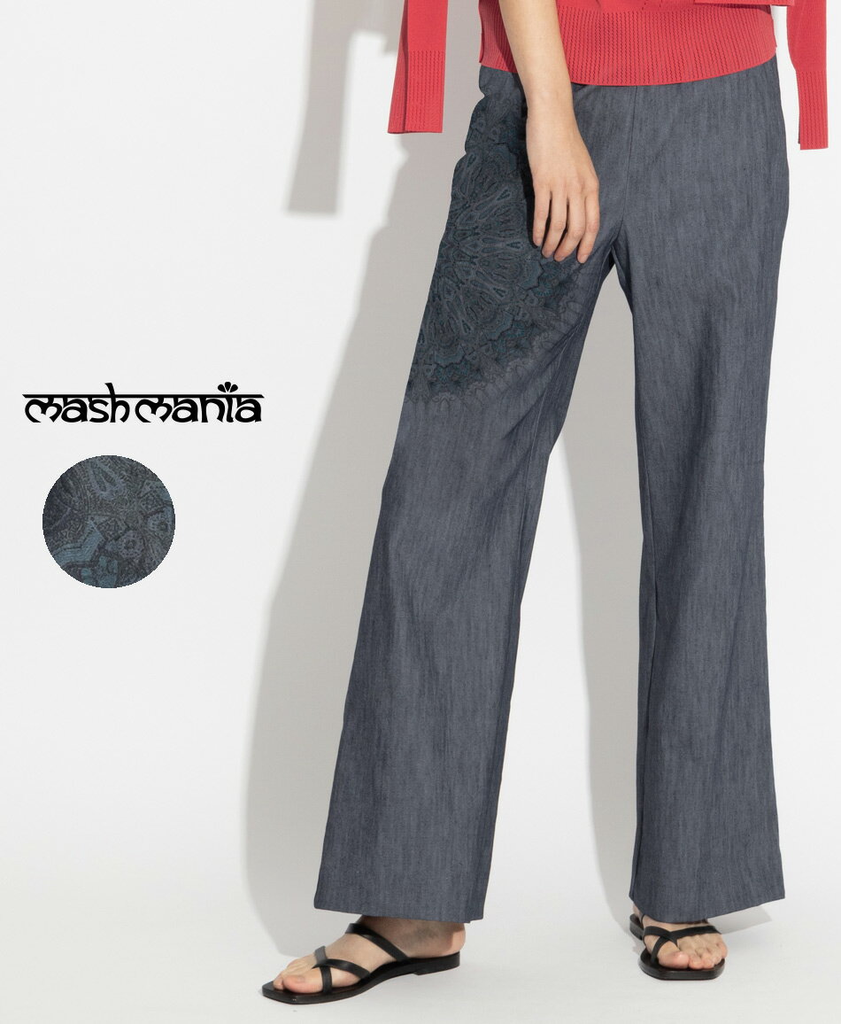 【web限定 30%OFF】mash mania デニムパンツ アニカ【送料無料】/レディース 日本製 洗える 手洗い可 柄 ウエストゴム ストレッチ 伸縮性 フレアー デニム 綿麻混 リネン インディゴ マッシュマニア
