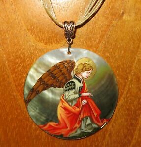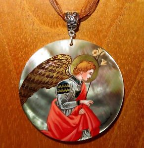 【送料無料】ネックレス フィリッポリッピシェルフラグメントfilippo lippi pendentif main de coquille peint fragment le annunciation ange