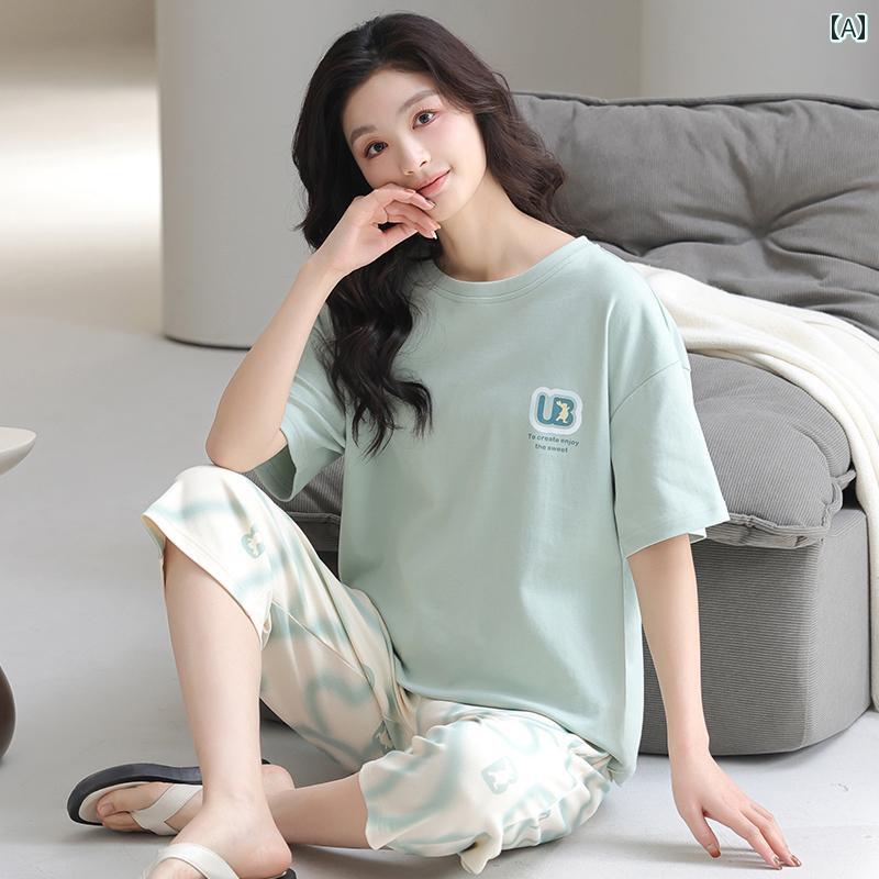 綿 パジャマ レディース 2025 クロップドパンツ 半袖 外で できます 大きいサイズ ルームウェア スーツ 春夏 カジュアル 生地素材構成: 綿袖丈:半袖対象性別:女性サイズ: M L XL 2XL