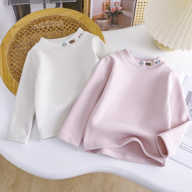 カットソー キッズ 女の子 ベビー モックネック 裏起毛 厚手 保温 綿 長袖 韓国 かわいい アニマル キャラクター 無地 ソフトタッチ 普段使い 防寒 秋冬