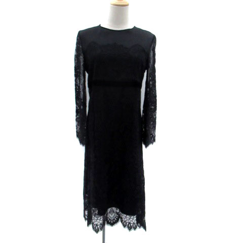 【中古】アクアガール aquagirl ワンピース ラウンドネック 長袖 ミモレ丈 総レース インナー付き 36 S 黒 ブラック /HO41 レディース 【ベクトル 古着】 250327