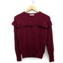 【中古】アクアガール aquagirl セーター ニット フリル 無地 切替リブ 長袖 丸首 ウール 毛 ボルドー 赤 /HT18 レディース 【ベクトル 古着】 230804