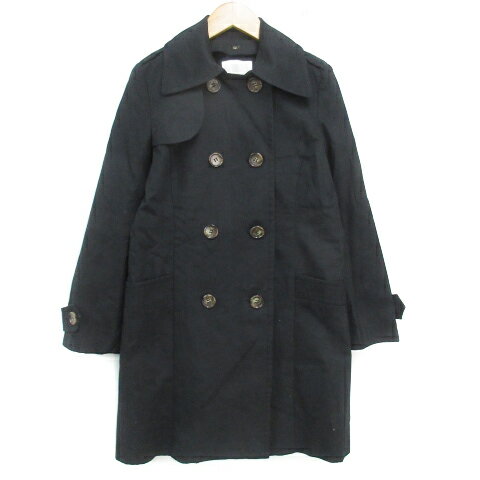 【中古】アクアガール aquagirl トレンチコート スプリングコート ロング丈 ステンカラー ノーカラー 2way ダブルボタン 36 黒 ブラック /FF2 レディース 【ベクトル 古着】 230731
