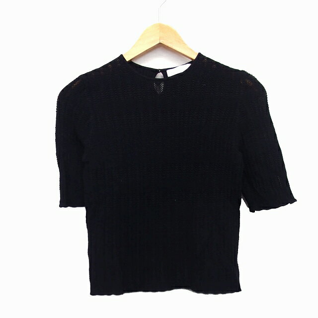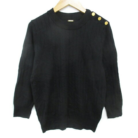 【中古】アクアガール aquagirl ニット カットソー ショート丈 切替 柄編み リブ 五分袖 丸首 ブラック 黒 /HT9 レディース 【ベクトル 古着】 230413