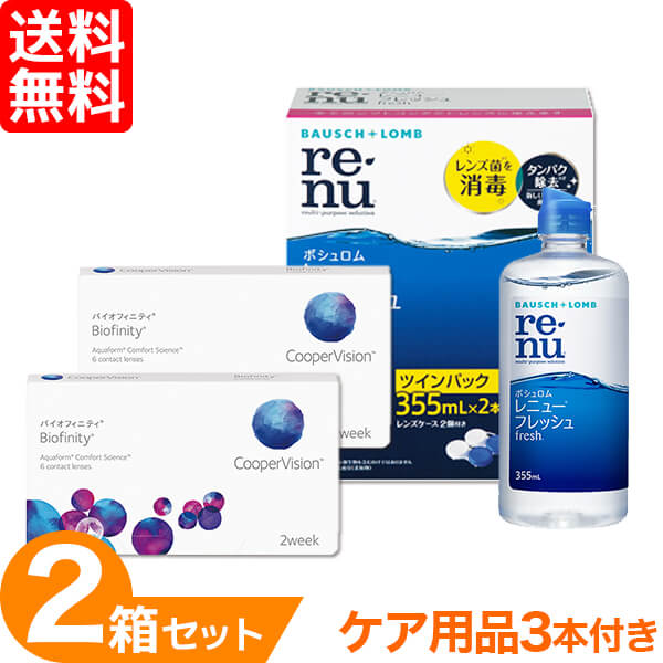 【送料無料】 バイオフィニティ 2箱 × レニューフレッシュ 355ml 3本セット コンタクトレンズ 2week Biofinity クーパービジョン 2週間使い捨て コンタクト 近視用 遠視用 CooperVision ケア用品付き