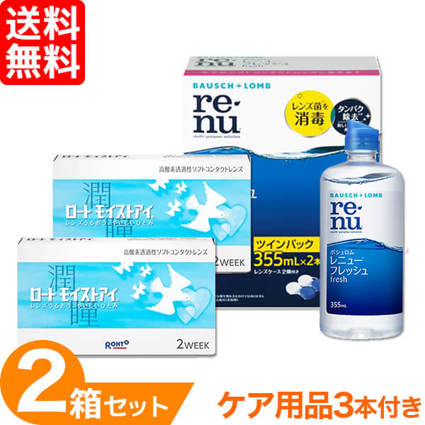 【送料無料】 ロートモイストアイ 2箱 × レニューフレッシュ355ml 3本セット お得なケア用品付きセット 2週間 使い捨て コンタクトレンズ 2week コンタクト