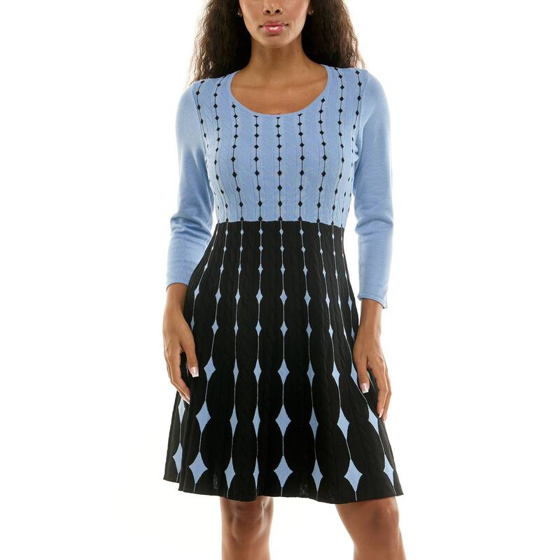 【送料無料】 ニナレオナルド レディース ワンピース トップス Women's Nina Leonard Fit & Flare Sweater Dress Light Blue Black