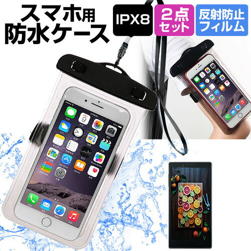FCNT arrows We2 F-52E / M07 [6.1インチ] 防水ケース ポーチ カバー アームバンド 防水保護等級 IPX8 ストラップ付 と 反射防止 液晶保護フィルム セット 浴室 キッチン 海 メール便送料無料 bgt 互換品
