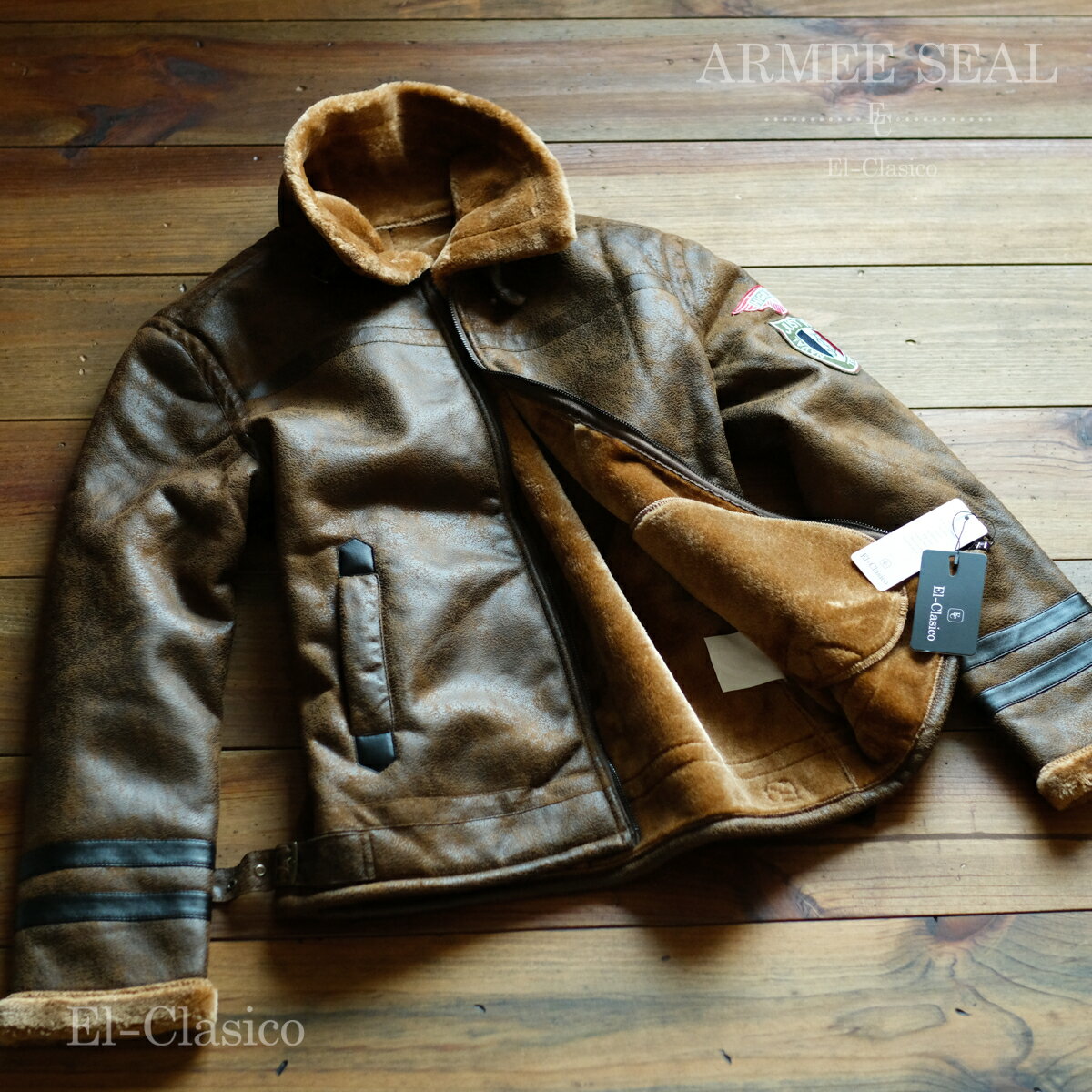 新品*フランス*ARMEE SEAL* B-3 ボア フライト ムートンジャケット チェスナット 茶■仏空軍 襟 腰ベルト 秋冬 メンズ◆SEAL-BR B-3本格派フライトジャケット 海外はフランスから「ARMEE SEAL」の素敵なフェイクムートン、B-3本格派フライトジャケットの出品です。当店エル・クラシコのお奨めの超選りすぐりジャケットです。フランスエンブレムが素敵でムートンの質感がかっこいい☆裏地のボアはびっしり袖までふかふかでこの冬活躍間違いなし。状態:新品カラー:チェスナットブラウンサイズ:M・L・XL・XXL・XXXL・4XL実寸:(平置き実寸)M:着丈約64cm 胸囲約106cm 肩幅約45cm 袖丈約61cmL:着丈約66cm 胸囲約110cm 肩幅約47cm 袖丈約62cmXL:着丈約68cm 胸囲約114cm 肩幅約48cm 袖丈約63cmXXL:着丈約70cm 胸囲約118cm 肩幅約49cm 袖丈約64cmXXXL:着丈約72cm 胸囲約122cm 肩幅約50cm 袖丈約64cm4XL:着丈約73cm 胸囲約124cm 肩幅約51cm 袖丈約64cm素材:SHELL・LINING/POLYESTER100% 5