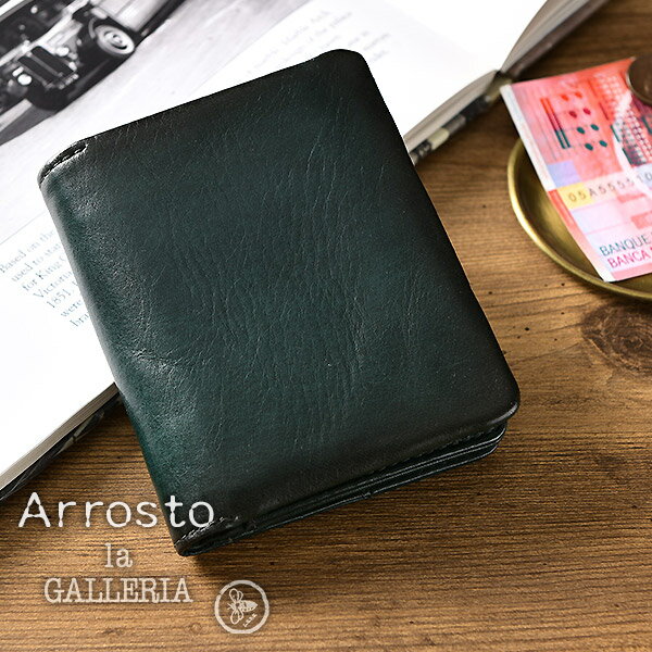 青木鞄 二つ折り 財布 [2971] アロースト メンズ 牛革 レザー ショートウォレット 小銭入れ カードホルダー プレゼント ギフト ラッピング 父の日 誕生日 クリスマス 退職祝い キャメル チョコ ダークグリーン ダークブルー la GALLERIA ラ・ガレリア Arrosto